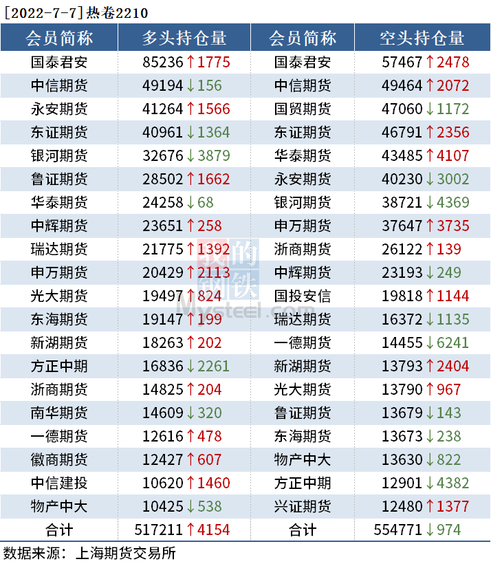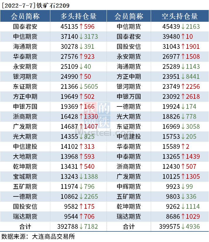 黑色持仓日报:铁矿石涨3.91% 国泰君安增持2.6万手螺纹钢空单 我的钢铁网 07月07日 截至7月7日收盘,螺纹钢2210收4209元/吨,涨0.69%;热卷2210收4202元/吨,涨0.07%;铁矿石2209收756.5元/吨,涨3.91%。 各品种具体如下: 各品种持仓情况具体如下:(文章来源:我的钢铁网) (责任编辑:admin)