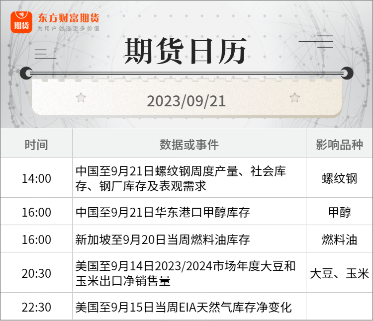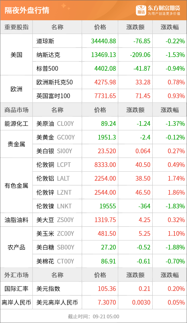 东方财富期货早餐 9月21日 周四