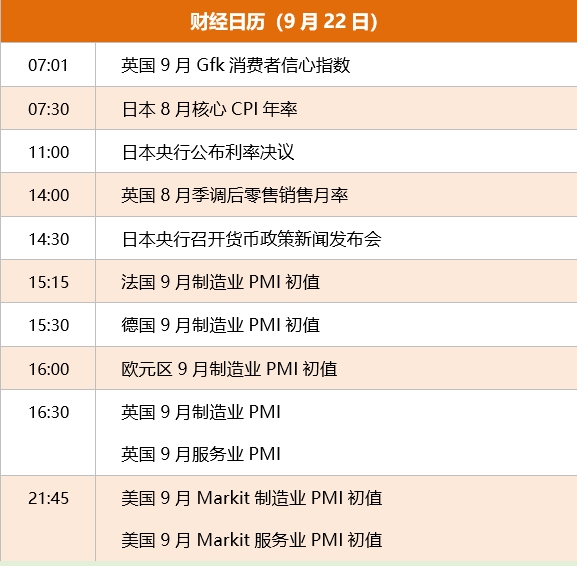 人民币:在岸人民币兑美元(CNY)北京时间03:00收报7.3066元,较周三夜盘收盘跌176点。成交量150.47亿美元。离岸人民币(CNH)兑美元北京时间04:59报7.3141元,较周三纽约尾盘跌67点,盘中整体交投于7.3036-7.3215元区间。 美元:周四(9月21日)纽约尾盘,ICE美元指数涨0.05%,报105.384点,日内交投区间为105.278-105.738点,逼近3月8日顶部105.883点、106关口、2022年11月30日顶部107.195点。彭博美元指数涨0.16%,报1256.90点,日内交投区间为1254.92-1259.79点。美元兑日元下跌0.53%,报147.56,盘中交投区间为148.46-147.32。 界面新闻:英国央行意外维持基准利率在5.25%不变,市场预期加息25个基点;此前连续14次加息,自2021年12月以来累计加息515个基点。英国央行将在未来12个月内削减国债购买规模1000亿欧元。英国央行表示,如果通胀持续存在,需要进一步收紧货币政策;目标将国债存量在一年内减少至6580亿英镑。