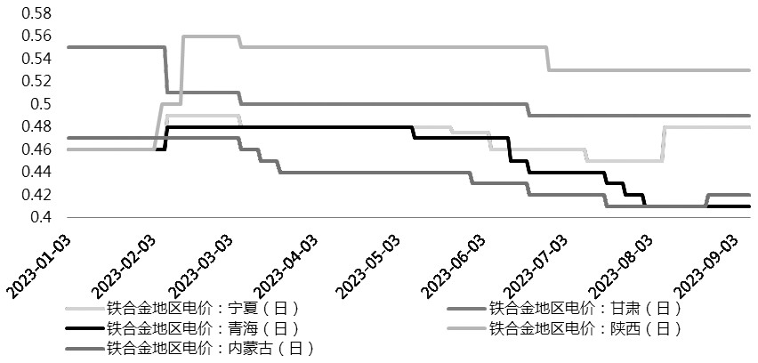 电价变动对双硅成本影响较大。从耗电量上看,冶炼单吨72硅铁约耗电8000度,冶炼单吨6517锰硅约耗电4000度。从成本结构上看,在硅铁和锰硅成本构成中,电力均占较大比例:电力成本在硅铁冶炼成本中占比超55%,在锰硅冶炼成本中占比约30%。因此,电价的变动,对双硅成本影响较大。 影响电价的五大因素 影响电价的因素有很多,主要包括市场供需、发电能源结构、发电能源成本、发电能源及电力政策、极端天气等五个因素。一为市场供需关系。当电力供应量大于电力需求量时,电价存在下行压力,如春季电厂库存维持高位但夏季用电高峰还未到来时。当电力供应小于电力需求量时,电价存在上行驱动,如夏季用电高峰到来,但电厂发电由于某种原因而供电不足导致电价上涨。二为发电能源结构。根据国家统计局数据,2023年1—7月我国发电能源结构中火力发电占比70.76%,水力发电占比11.4%,风力发电占比9.65%。三为发电能源成本。今年电厂煤炭在保供政策下供应持续高位,电价在夏季用电高峰时仍可保持稳定,南方云南等地水力发电占比偏高,今年二季度降雨偏少而电价偏高。四为发电能源及电力政策。今年对电价产生影响的主要是输配电价改革(第三监管周期)。五为极端天气。 2023年北方产区电价浮动主要受政策影响较大,而今年南方产区的电价浮动则与发电能源结构关系更大。铁合金主产区主要分布在西南和西北地区,硅铁产区主要集中在西北五个省份(内蒙古、宁夏、青海、陕西、甘肃),而锰硅产区主要集中在西南四个区域(广西、云南、贵州、重庆)和北方两个产区(内蒙古、宁夏)。今年5月随着输配电价改革政策的落地,西北地区电价普遍下调。南方产区,如贵州、云南等地,降雨偏少影响,二季度电价持续偏高,自6月份开始,云南地区电价才出现明显下跌。 输配电价改革政策解读 硅铁供应主要集中在西北五省,宁夏和内蒙古两地的锰硅供应在全国占比超60%,因此本文主要针对影响北方电价的输配电价改革(第三监管周期)进行梳理。 所谓输配电价是指销售电价中包含的输配电成本,是“运电”的费用。在输配电价改革以前,电网企业扮演“统购统销”的角色,其盈利路径主要是赚取“差价”。即电厂将电力按照国家规定的价格卖给电网,后者再按照国家规定的价格卖给用户。 国家发改委于2015年启动输配电价改革试点:2015年年初,《中共中央国务院关于进一步深化电力体制改革的若干意见》提出,输配电价逐步过渡到按“准许成本+合理收益”原则,分电压等级核定。随后,国家发改委又于2017年和2020年完成第一监管周期和第二监管周期的输配电价核定,形成和完善了输配电价监管体系,然而输配电价仍未真正实现按成本加收益的方式核定。 2023年5月,为贯彻落实党中央、国务院关于深化电力体制改革的决策部署,更好保障电力安全稳定供应,促进电力行业高质量发展,国家发展改革委印发《关于第三监管周期省级电网输配电价及有关事项的通知》(以下简称《通知》),在严格成本监审基础上核定第三监管周期省级电网输配电价,进一步深化输配电价改革。 《通知》中对电价起到直接作用的主要有两点,一是将原包含在输配电价中的上网环节线损和抽水蓄能容量电费单列;二是对两部制电价进行了进一步规定,即100千伏安至315千伏安之间的用户,可选择执行单一制或两部制电价;315千伏安及以上的,执行两部制电价。 对于第一点,有利于更加及时、合理地体现用户购电线损变化,清晰反映电力系统调节资源费用,进一步强化电网准许收入监管,使输配电价功能定位更加清晰。第三监管周期输配电价改革后,本轮省级电网输配电价有升有降,华东、西北区域的电量电价下降,华北、华中、东北区域电网的电量电价上调。具体电价调整的原因,可能性一是根据不同的资源禀赋和需求,不同地方抽水蓄能电站的建成与否,导致本轮电价有所浮动;可能性二是由于部分地区固定资产折旧已经提完或者贷款已经还完,在一定程度上摊薄了费用,因此电量电价下调。 对于第二点,首先要明确一下两部制电价的定义。 两部制电价包括电量电价和基本电价两部分,电量电价代表电网企业输配电的变动成本及一部分固定投资成本,按照用户负荷当期用电量为计费标准进行结算,与用户实际的用电量成正比。电量电价在实际执行中包含阶梯电价、峰谷分时电价、季节性电价等多种方式。基本电价代表电网企业输配电的固定投资成本,按照用户负荷及电压等级等为计费标准分摊电网容量成本,与用户用电容量或需求量成正比。 本次《通知》中对于两部制电价的规定,既保障了电力成本得到合理分担,也使得电力用户能根据自身情况灵活安排用电和报装容量,减少电能损耗、提高设备利用率。 双硅后市展望 首先,电价或处于长周期下降通道。自5月第二轮监管周期的输配电价改革政策落地后,西北产区的输配电费出现不同程度的下调,并且受煤炭保供政策影响,电厂煤炭供应并不会紧缺,在夏季用电高峰过去后,西北地区电价仍存在下行可能性,并且在青海等地新旧能源转换及分时电价政策不断完善的进程中,电价或处于长周期的下降通道中。 其次,铁合金产能会向稳定的低电价区域陆续集中。由于冶炼铁合金高耗电的特点,长周期来看,稳定的低电价区域(如内蒙古)的铁合金产能利用率将大幅提高,
