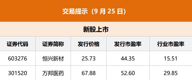 Shibor:9月22日,隔夜shibor报1.7270%,下跌15.7个基点;7天shibor报1.9880%,上涨3.7个基点;3个月shibor报2.2730%,上涨1.3个基点。 欧债:欧债收益率多数收涨,英国10年期国债收益率跌5.2个基点报4.240%,法国10年期国债收益率涨1个基点报3.283%,德国10年期国债收益率涨0.3个基点报2.735%,意大利10年期国债收益率涨4.5个基点报4.580%,西班牙10年期国债收益率涨1.3个基点报3.805%。 美债:美债收益率全线收跌,2年期美债收益率跌4.3个基点报5.114%,3年期美债收益率跌6.2个基点报4.803%,5年期美债收益率跌6.5个基点报4.561%,10年期美债收益率跌6.4个基点报4.435%,30年期美债收益率跌5.3个基点报4.524%。 21财经:据了解,目前监管部门已初步批复方案及额度,特殊再融资债券或在下半年重启发行,可用于置换隐性债务,以缓释债务风险。特殊再融资债券额度将超过万亿,并向12个高风险省份倾斜。