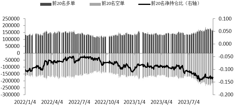 上周国内A股市场呈现先抑后扬走势,上证指数上周五强劲反弹,重新涨至3100点上方,最后收报3132.43点。同时期指四个品种均有不同程度上涨,其中IH涨幅最大,主力合约当周上涨1.88%,IF紧随其后,主力合约周涨幅为1.24%,IC及IM相对滞涨,主力合约分别上涨0.58%和0.34%。基差方面,由于期指走强,期货四个品种均现升水状态,截至上周五,IF、IH、IC及IM主力合约分别升水24.3、17.6、27.8及10.1点。 量能方面,交割影响减退之后,上周期指持仓明显回升,四个品种当周共计增仓32482手,至917001手。同时期指各品种持仓均有所增加,其中IF增仓8592手,持仓升至263559手,IH增仓8764手,持仓升至138211手,IC增仓4275手,持仓升至298748手,IM增仓10851手,持仓升至216483手。 持仓方面,期指各品种前20席位持仓(下称主力)变化略有不同。具体说来,IF多头主力增仓2706手(交易所公布合约9月22日与9月15日主力持仓总和的差值,下同),空头主力增仓4674手,净空持仓升至53006手;IH多头主力增仓4371手,空头主力增仓4492手,净空持仓升至29630手;IC多头主力减仓2394手,空头主力增仓496手,净空持仓升至17552手;IM多头主力增仓5263手,空头主力增仓7739手,净空持仓升至12811手。 具体席位方面,市场分歧增大,上周IF多数席位持仓均有不同程度增加。多头方面,南华期货席位多头增仓300余手,净多持仓升至4971手,平安期货席位多头增仓174手,净多持仓升至1314手,方正中期席位多头增仓482手,净多持仓升至1147手,兴证期货席位多头增仓1000余手,净持仓由空翻多,净多持仓升至1038手。空头方面,国泰君安席位空头增仓近3000手,净持仓由多翻空,净空2210手,海通期货席位空头增仓1000余手,净多持仓升至11736手,乾坤期货席位多头增仓1678手,持仓升至4983手,广发期货席位多头增仓1104手,净多持仓升至11340手。