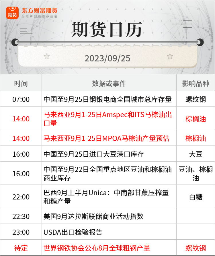 东方财富期货早餐 9月25日 周一