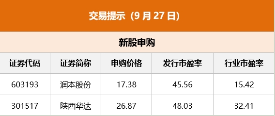成都市住建局:印发《关于进一步优化政策措施促进房地产市场平稳健康发展的通知》,调整住房限购措施。四川天府新区直管区、成都高新区南部园区、锦江区、青羊区、金牛区、武侯区、成华区继续实施住房限购,统一为一个限购区域。其他区域不再审核购房资格。在限购区域范围内,购买144平方米以上(不含144平方米)住房,不再审核购房资格,更好满足居民改善型住房需求。 每日经济新闻:据悉,北京链家对现行二手房交易服务费的收取方式和标准进行调整,从目前施行的由交易一方承担经纪服务费用,转变为交易双方共同承担经纪服务费用。与此同时,北京链家的房产经纪服务费的收费标准也从目前房屋成交总价的2.7%统一下调至2%,由买卖双方各承担1%。 澎湃新闻:9月18日-24日,重点城市新房成交环比上升58.18%,二手住宅成交环比上升7.5%。分城市来看,上海、北京、东莞、郑州等地新房成交量实现翻倍增长,青岛、无锡、苏州等城涨幅可观,环比涨幅均在70%以上;东莞、郑州二手房涨幅领跑,环比涨超80%,上海单日二手房成交量创4月以来新高。 福建省福州市:职工家庭申请纯住房公积金贷款购买产权面积在144平方米(含)以下的首套自住住房,按首付款比例不低于20%执行;购买产权面积在144平方米(含)以下的二套自住住房及144平方米(不含)以上的自住住房,按首付款比例不低于30%执行。申请组合贷款购房的,参照商业银行首付款比例的相关规定执行。 公司新闻 捷荣技术:深交所披露,捷荣技术9月13日至9月26日累计上涨97.1%,涨幅严重异常期间,获自然人买入115.08亿元,占比94.89%;其中,中小投资者累计买入77.49亿元,占比63.89%。机构投资者买入6.19亿元,占比5.11%。 阿里巴巴:公司拟通过以菜鸟股份于香港联交所主板独立上市的方式分拆菜鸟。拟议分拆完成后,阿里巴巴将继续持有菜鸟50%以上的股份,因此,菜鸟将仍为本公司的子公司。据港交所文件,菜鸟智慧物流网络有限公司向港交所提交上市申请,联席保荐人为花旗、中信证券、摩根大通。 宁德时代:多家媒体突然报道称,福特暂停了密歇根州一座耗资35亿美元的新电动汽车电池工厂的建设。福特公司今年2月公布上述计划,将与宁德时代签订电池技术合同,宁德时代提供电池技术,并将帮助福特建厂、配备员工。对此,宁德时代证券部工作人员回应称,该消息是虚假消息,我们推进是顺利的。 华海清科:近日,公司首台12英寸单片终端清洗机HSC-F3400机台出机发往国内大硅片龙头企业。HSC-F3400机型配备了新型清洗模块、干燥模块及颗粒与金属污染控制系统,可稳定实现大硅片正面及背面的高效率超洁净清洗。 江苏国信:控股子公司江苏射阳港发电有限责任公司新建的一台1000MW二次再热超超临界燃煤发电机组,完成168小时满负荷试运行,于2023年9月26日正式投产运营。该项目充分利用射阳港电厂现有的部分设施与土地,同步建设高效除尘、脱硫、脱硝设施,各排放指标均实现超低近零排放。 金钼股份:预计前三季度归母净利润在22.5亿元至25.0亿元之间,同比上涨约131.24%至156.94%。报告期内,国际钼市场价格高位震荡,主要钼产品价格同比上涨。 中泰证券:1-8月,公司实现营业收入85.43亿元,同比增长27.36%,净利润17.70亿元,同比增长87.22%。其中,7、8月合并实现营业收入19.19亿元,同比增长13.32%,净利润1.31亿元,同比增长289.05%。 中国电建:公司控股股东电建集团拟6个月内通过上交所系统允许的方式增持公司A股股份,累计增持比例不低于增持前公司已发行总股本的1%,不超过增持前公司已发行总股本的2%,增持总金额不超过24亿元。 华大智造:公司控股股东华大科技控股提议以2.5亿元-5亿元回购股份,用于员工持股计划或股权激励。回购股份的价格不超过125元/股。 金博股份:公司拟以5000万元-1亿元回购股份,用于依法注销减少注册资本。回购价格不超过120元/股。