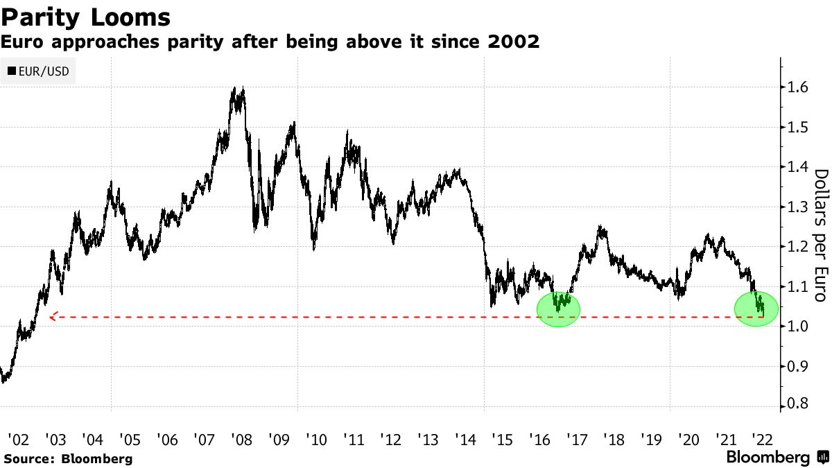 跌破1.02!欧元兑美元创近20年新低 掀起做空浪潮 下月或将触及平价?