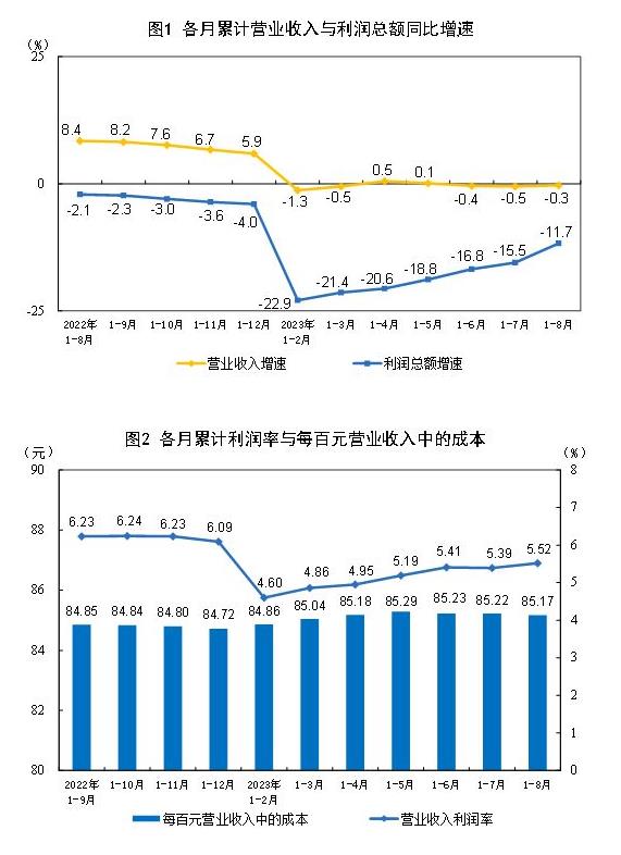 统计局:2023年1—8月份全国规模以上工业企业利润下降11.7%