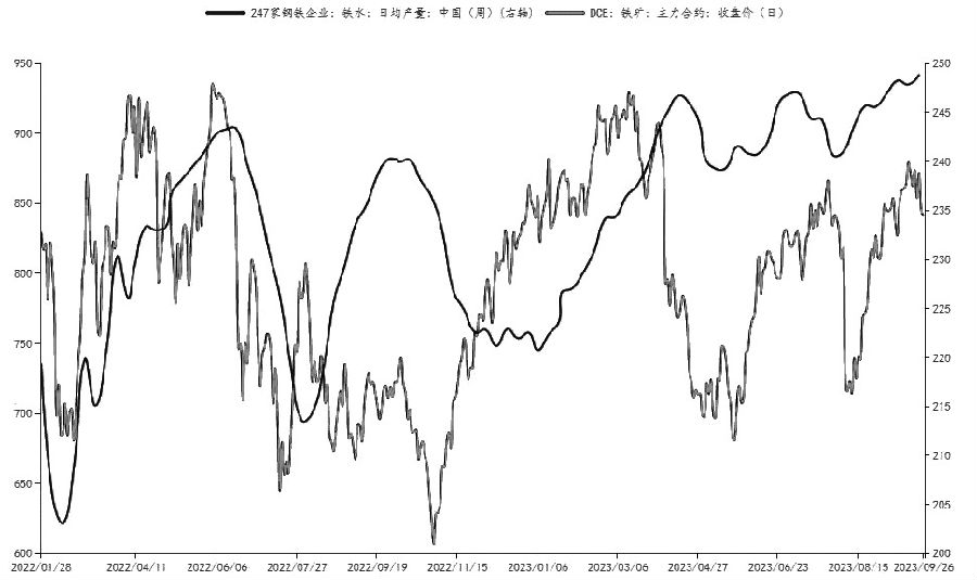 图为铁矿主力合约价格与铁水产量 复盘近几年国庆前后铁矿石价格走势,我们认为节后铁矿石主力合约会出现1个月左右的下行周期,而11月—明年3月铁矿石走势偏强。 目前政策红利不断,产业消息发酵,市场情绪转暖。基本面核心矛盾在于强现实与弱预期的博弈,目前铁水产量未见明显下滑,预计炉料支撑偏强,节后铁矿石期价回调幅度或不及往年。铁水产量出现明确的回调趋势信号将会成为炉料甚至是黑色系转空的标志。 据统计,9月中旬全国粗钢产量3031.81万吨,比9月上旬下降0.24%,同比上升2.52%。截至9月22日,日均铁水产量在248.85万吨,处于近年来90%分位线上方,从8月初开始保持上行趋势,可以预见9月粗钢产量环比会止跌转增。我们对比了铁水产量和铁矿价格走势趋势来,两者今年来走势具有高度正相关性。因此铁水产量的持续反弹给予铁矿石上行动能。 政策面来看,近期利好政策不断,前有支持地方债务风险化解办法,调整优化房地产信贷政策,因城施策的稳楼市政策措施力度也持续增大,后有降准降息,“认房不认贷”逐步落实,三季度地方债发行超预期在情绪上支撑黑色系。而今年专项债额度3.8万亿元,1—7月新增2.5万亿元,近期迎来发行高峰,基建托底作用预期仍旧强劲。 从当前已公布的部分省份数据来看,截至8月份,共有15个省份1—8月粗钢产量同比微增,总产量占全国总量的75%。国家统计局数据显示,8月份,中国粗钢产量8641万吨,同比增长3.2%;1—8月份,中国粗钢产量71293万吨,同比增长2.6%。 结合相关机构对于14省下半年产量平控的数据推演,据测算,若2023年粗钢产量同比不增,则7—12月,国内粗钢日均产量上限为262万吨,同比下降1.78%,比6月下降13.69%,下半年粗钢产量比上半年需减少5332万吨,降幅9.95%。 从测算数据看出,如果粗钢平控政策逐步落地,下半年粗钢产量预计将出现明显下降,从当前的铁水产量来看,铁水产量有较大下行空间,进而抑制炉料需求,压制炉料价格。 近几年铁矿石价格波动剧烈,2021年5月更是创了历史新高,达到1350元/吨,回顾过去,当铁矿石价格过快上涨,不利于下游行业发展时,国家发改委会及时进行价格监管。