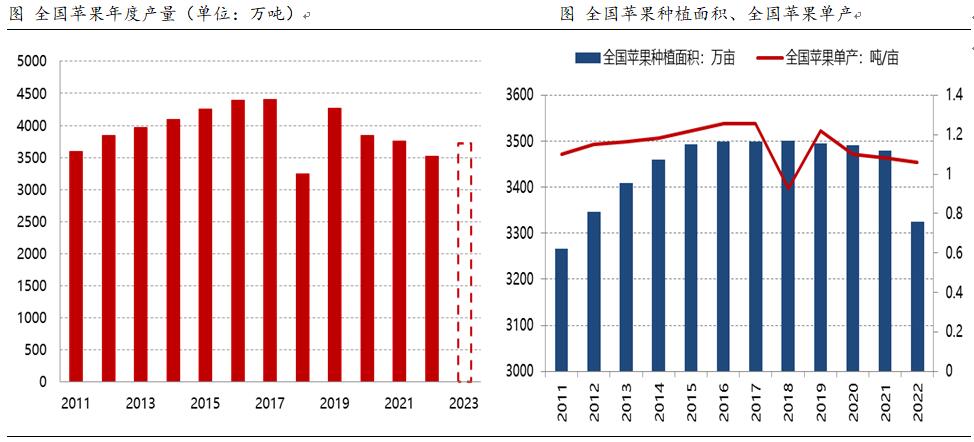 数据来源:文华财经 国信期货 中秋、国庆双节备货行情开启,新季尚未上市,旧季库存处于历史偏低位置,市场预计供应偏紧,苹果维持高位振荡。 第二部分 苹果基本面分析 一、新季产量增加,优果率或同比下滑