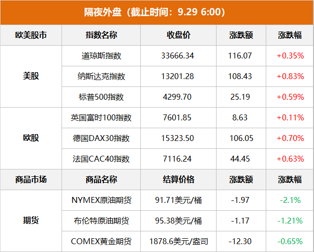 东方财富Choice数据 09月29日