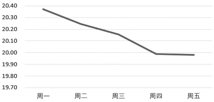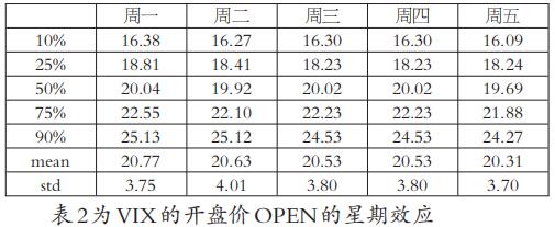 图2为2023年10月10日50ETF期权10月波动率微笑 IV的星期效应 IV的星期效应指的是金融市场中IV在一周内不同工作日之间的变化或波动。这种星期效应可以反映在周一到周五市场参与者对未来波动性的不同预期。我们以50ETF期权为例说明星期效应。表2给出了从周一到周五,50ETF期权VIX的OPEN统计结果。由表2可以明显看出,50ETF期权存在周一效应,也就是周一的VIX的OPEN指标是5天中最高的。这个也是正常的,因为境内市场一般会在周末公布重要消息,因此周一开盘波动率通常会高开。图3给出了50ETF期权一周VIX的走势。由图3可以清楚看出,从周一到周五,波动率存在明显的下降趋势。这也是合理的,因为境内一般不会在周中发布重要消息,因此波动率从周一开始逐步下跌。