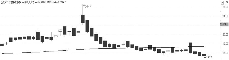 图6为2023年10月12日50ETF期权近月T型报价 由此可得出结论:当IV偏度过大时,可以建立比例价差部位捕获ALPHA。 IV脉冲上涨缓慢下跌的特性 IV脉冲上涨缓慢下跌的特征是指IV在短时间内迅速上升,而下跌时则较为缓慢。这一现象可能与期权市场的买卖活动有关。当宏观事件突然来临时,交易者开始不计成本买入期权进行投机操作,从而迅速拉升了期权的IV;当宏观消息慢慢被市场消化时,期权的IV开始缓缓下跌到长期均线附近。