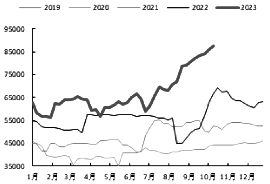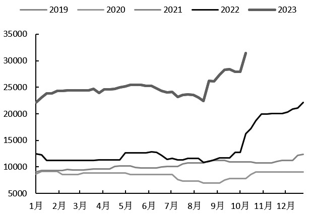 图为全国工业硅周产出(单位:吨) 国庆节后,工业硅现货价格以持稳为主,期货盘面呈现先扬后抑走势。工业硅期价波动加大,一方面是基于工业硅供需两旺的格局;另一方面是基于9月下旬以来,工业硅现货保持稳中上行节奏,国庆节后存在期货补涨修复节前下跌的逻辑。 下游行业分化 国庆节后,工业硅供给端维持创新高节奏,三大产区之外仍然是复工复产的“主力军”,但三大产区亦有矿热炉复产以及产出增加,主要集中在新疆产区。目前新疆产出回到年内高位,而三大产区之外的工业硅产出也创下新高。但是从矿热炉开工情况来看,新疆以及三大产区之外,硅企当下开工与近一年的开工高点仍有差距,上述产区仍维持下半年以来的利润修复水平,叠加整体企业端库存压力不明显,预计新疆以及三大产区之外,硅企仍将持续复工复产,贡献工业硅供给增量。相较而言,四川、云南产区接下来将面临枯水期电力成本上升,在此背景下,预计两省产出将逐步呈现高位回落。综合来看,短期工业硅供给延续创新高节奏,旺季之后大概率维持在相对高位。 近期,有机硅企业迫于需求不佳和累库压力而被动减产,但多晶硅企业以及铝合金企业纷纷增产、提高开工率,继续贡献工业硅需求增量。得益于下游硅片产出依然高位,以及多晶硅新增产能释放,多晶硅产出保持增长,产出继续创新高,对工业硅需求支撑强劲。多晶硅产出创新高的同时,晶伏产业链的负反馈仍在继续,近期多数硅料产品价格下跌1%—2%。 从多晶硅供需端来看,虽然下游硅片环节利润压缩,但硅片产出依然处于高位。短期来看,多晶硅需求仍有保障,叠加多晶硅目前仍维持下半年以来的利润修复水平,因此多晶硅产出大概率继续保持增长,对于工业硅需求拉动预期仍在。铝合金需求延续9月以来的改善趋势,汽车产销增长带动铝合金下游订单重回荣枯线上方后继续保持增长,铝合金需求在9月、10月旺季改善明显,且整体开工有望在旺季背景下进一步增加,利好工业硅需求。 库存压力尚可 受国庆长假以及工业硅供给快速增长的影响,工业硅流通环节库存呈现累积,但目前流通环节库存压力依然不明显,库存水平仍处于年内低位,致使工业硅企业复工复产积极性依然强劲。但同时,期货仓单注册量显著增加,预计11月底前期货仓单的集中注销将对现货流通库存以及工业硅价格构成一定压力。