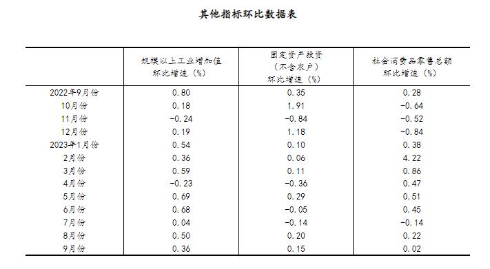 | 前三季度,面对复杂严峻的国际环境和艰巨繁重的国内改革发展稳定任务,在以习近平同志为核心的党中央坚强领导下,各地区各部门坚决贯彻落实党中央、国务院决策部署,坚持稳中求进工作总基调,完整、准确、全面贯彻新发展理念,加快构建新发展格局,扎实推动高质量发展,精准有力实施宏观政策调控,着力扩大内需、提振信心、防范风险,国民经济持续恢复向好,生产供给稳步增加,市场需求持续扩大,就业物价总体改善,发展质量稳步提升,积极因素累积增多。 初步核算,前三季度国内生产总值913027亿元,按不变价格计算,同比增长5.2%。分产业看,第一产业增加值56374亿元,同比增长4.0%;第二产业增加值353659亿元,增长4.4%;第三产业增加值502993亿元,增长6.0%。分季度看,一季度国内生产总值同比增长4.5%,二季度增长6.3%,三季度增长4.9%。从环比看,三季度国内生产总值增长1.3%。 一、农业生产形势总体良好,畜牧业平稳增长 前三季度,农业(种植业)增加值同比增长3.6%。全国夏粮产量14613万吨,比上年下降0.9%,产量居历史第二高位;早稻产量2834万吨,增长0.8%。秋粮播种面积稳中有增,长势总体正常,全国粮食有望再获丰收。前三季度,猪牛羊禽肉产量6974万吨,同比增长3.9%,其中猪肉、牛肉、羊肉、禽肉产量分别增长3.6%、5.0%、5.2%、4.0%;牛奶产量增长7.2%,禽蛋产量增长2.1%。三季度末,生猪存栏44229万头,同比下降0.4%。前三季度,生猪出栏53723万头,增长3.3%。 二、工业生产恢复加快,装备制造业较快增长 前三季度,全国规模以上工业增加值同比增长4.0%,比上半年加快0.2个百分点。分三大门类看,采矿业增加值同比增长1.7%,制造业增长4.4%,电力、热力、燃气及水生产和供应业增长3.5%。装备制造业增加值增长6.0%,比全部规模以上工业快2.0个百分点。分经济类型看,国有控股企业增加值同比增长4.6%;股份制企业增长4.8%,外商及港澳台商投资企业增长0.5%;私营企业增长2.3%。分产品看,太阳能电池、充电桩、新能源汽车产量分别增长63.2%、34.2%、26.7%。9月份,规模以上工业增加值同比增长4.5%,增速与上月持平,比7月份加快0.8个百分点;环比增长0.36%。1-8月份,全国规模以上工业企业实现利润总额同比下降11.7%,降幅比上半年收窄5.1个百分点,其中8月份同比增长17.2%。9月份,制造业采购经理指数为50.2%,比上月上升0.5个百分点,企业生产经营活动预期指数为55.5%。 三、服务业持续较快恢复,接触型聚集型服务业和现代服务业带动作用增强 前三季度,服务业增加值同比增长6.0%。其中,住宿和餐饮业,信息传输、软件和信息技术服务业,租赁和商务服务业,交通运输、仓储和邮政业,金融业增加值分别增长14.4%、12.1%、9.5%、7.5%、7.0%。9月份,服务业生产指数同比增长6.9%,比上月加快0.1个百分点,增速连续2个月回升。其中,住宿和餐饮业,信息传输、软件和信息技术服务业,交通运输、仓储和邮政业生产指数分别增长17.7%、11.3%、9.3%。1-8月份,全国规模以上服务业企业营业收入同比增长7.2%。9月份,服务业商务活动指数为50.9%,比上月上升0.4个百分点;业务活动预期指数为58.1%。其中,水上运输、邮政、电信广播电视及卫星传输服务、互联网软件及信息技术服务、货币金融服务等行业商务活动指数位于55.0%以上较高景气区间。 四、市场销售趋于活跃,服务消费增长较快 前三季度,社会消费品零售总额342107亿元,同比增长6.8%。按经营单位所在地分,城镇消费品零售额296410亿元,同比增长6.7%;乡村消费品零售额45697亿元,增长7.4%。按消费类型分,商品零售305002亿元,增长5.5%;餐饮收入37105亿元,增长18.7%。基本生活类商品销售稳定增长,限额以上单位服装鞋帽针纺织品类、粮油食品类商品零售额分别增长10.6%、5.3%。升级类商品销售较快增长,限额以上单位金银珠宝类、体育娱乐用品类、化妆品类商品零售额分别增长12.2%、8.3%、6.8%。全国网上零售额108198亿元,同比增长11.6%。其中,实物商品网上零售额90435亿元,增长8.9%,占社会消费品零售总额的比重为26.4%。9月份,社会消费品零售总额同比增长5.5%,比上月加快0.9个百分点,增速连续2个月加快;环比增长0.02%。前三季度,服务零售额同比增长18.9%。 五、固定资产投资规模继续扩大,高技术产业投资持续较快增长 前三季度,全国固定资产投资(不含农户)375035亿元,同比增长3.1%;扣除价格因素影响,同比增长6.0%。分领域看,基础设施投资同比增长6.2%,制造业投资增长6.2%,房地产开发投资下降9.1%。全国商品房销售面积84806万平方米,同比下降7.5%;商品房销售额89070亿元,下降4.6%。分产业看,第一产业投资同比下降1.0%,第二产业投资增长9.0%,第三产业投资增长0.7%。民间投资下降0.6%;扣除房地产开发投资,民间投资同比增长9.1%。高技术产业投资同比增长11.4%,其中高技术制造业和高技术服务业投资分别增长11.3%、11.8%。高技术制造业中,航空、航天器及设备制造业,医疗仪器设备及仪器仪表制造业投资分别增长20.7%、17.0%;高技术服务业中,科技成果转化服务业、专业技术服务业投资分别增长38.8%、29.6%。9月份,固定资产投资(不含农户)环比增长0.15%。 六、货物进出口总体平稳,贸易结构持续优化 前三季度,货物进出口总额308021亿元,同比下降0.2%。其中,出口176025亿元,增长0.6%;进口131996亿元,下降1.2%。进出口相抵,贸易顺差44029亿元。民营企业进出口增长6.1%,占进出口总额的比重为53.1%。对共建“一带一路”国家