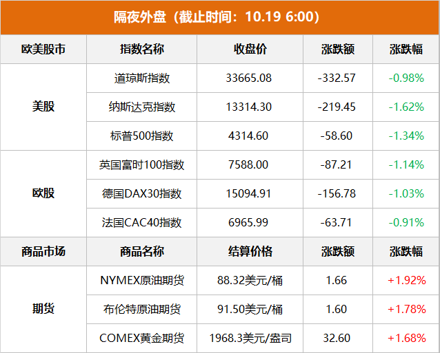 东方财富财经早餐 10月19日周四