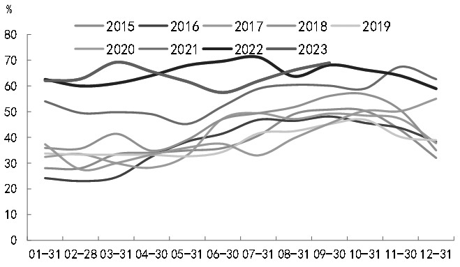 图为国内洗粗煤均价(单位:元/吨) 因此,后续供给端主要的关注点在于西南地区开工以及北方工厂的复产进度。按照往年季节性变化规律,西南地区即将进入季节性的平水期和枯水期,当地硅厂开工预计将有所回落。不过,考虑到西南硅厂仍有较为丰厚的利润空间,预计枯水期整体开工回落幅度或不大。此外,市场较为关注北方工厂的复产进度,亦有市场传言预计将于10月底进行复产,同时有消息称将会延后至12月底进行复产。整体而言,四季度新增投产、复产以及减产一并进行,综合测算下来,2023年全年工业硅产量达418.5万吨,同比增速8.0%。 [整体消费有所抬升 多晶硅提供主要的增量] 有机硅方面,政策利好持续出台,但有机硅“负利润+高库存”限制价格反弹空间。年初以来,地产板块承压以及出口持续回落拖累有机硅消费。9月中旬,DMC价格大幅上涨,一方面是由于有机硅下游补库需求拉动,或为国庆节前的补库操作;另一方面是近期工业硅原料成本持续抬升。8月以来,国内地产端利好政策频繁出台,但从高频购房数据来看,整体终端市场仍需继续恢复,预计后续地产销售端有所提振,从而带动有机硅消费缓慢修复。 通过对有机硅行业的历史复盘,可以看出有机硅过剩格局彻底修复仍有待时日。2020年下半年,受海外有机硅厂减产等因素的影响,DMC供给短缺推升报价。进入2021年,需求复苏使得有机硅价格维持高位,从而构筑出持续了一年多的高利润格局,如此丰厚的利润驱使新增产能入局。考虑到有机硅新增项目有1.5—2年的建设周期,自2022年5月开始供给端放量,整体行业步入供给过剩格局。当下,DMC报价前期有所提升,但多数有机硅企业利润仍低位,且持续偏高的工业硅价格加重成本负担,叠加高位库存压力,有机硅目前对工业硅采购仍维持刚需态势,整体修复过程仍漫长。据测算,2023年全年有机硅单体产量约为173.6万吨,同比增加1.7%。