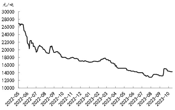 图为我国工业硅月度开工率 从成本端来看,经过上半年成本持续回落后,目前主要原料产品的价格有所企稳,且后续存在抬升预期。年初以来,伴随着成本端整体步入下行周期,部分工业硅原料价格也有所回落,硅煤价格、油焦价格以及电极价格均经历了不同程度的下跌。不过,近期原料价格企稳,伴随着成本端持续抬升,工业硅原料硅煤等价格均有所抬升,成本端后续具备走强预期,尤其是电力成本占总成本的比例接近30%,枯水期电价上调会在很大程度上影响生产成本。据统计,云南地区平均枯水期电价较丰水期上调0.12—0.15元/度,四川地区平均枯水期电价较丰水期上调0.17—0.18元/度,对应硅厂生产成本上移1700—2400元/吨。据此测算,枯水期西南地区完全成本线折盘面为14000—14500元/吨。