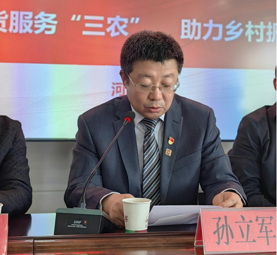 中天期货党支部书记、董事长孙立军发言 蔚县工信局党组书记、局长贾仲臣首先在致辞中对中天期货支持蔚县乡村振兴事业发展表示感谢,并介绍了蔚县乡村振兴工作开展情况。他提到,中天期货与蔚县已连续4年合作,希望通过双方长期深度合作,在期货专业帮扶、产业帮扶、公益性帮扶等方面进一步扩大合作,共融聚力,互补双赢,共同谱写蔚县乡村振兴新华章。