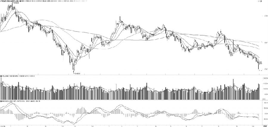 IF 加速探底 于虎山 10月23日 IF加权上周再创年内新低并呈现加速探底之势。均线方面,MA5、MA10、MA20均线系统空头排列,且MA5为重要的移动压力线。指标方面,MACD绿柱放大,且DIF与DEA仍在0轴之下,表明IF加权依然存在下行动力。另一方面,上周五IF加权收“十字星”,短期多空存在均衡的迹象,后市重点关注去年10月31日出现的重要低点3488.8点的支撑情况。(招商期货 于虎山) (责任编辑:admin)