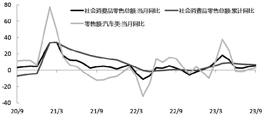 图为社会消费品、汽车零售总额同比(单位:%) 具体看,9月份,社会消费品零售总额39826亿元,同比增长5.5%,好于市场预期和前值,同比增速连续两个月回升,汽车零售同比增长反弹至2.8%。随着一系列促消费政策举措落地见效,消费潜力不断释放,住宿餐饮、文化旅游等服务消费明显回暖。9月规模以上工业增加值同比增长4.5%,与前值持平,好于市场预期。消费和工业生产是三季度GDP同比增长好于预期的主要来源。从就业上看,9月份全国城镇调查失业率为5.0%,比上月下降0.2个百分点,连续两个月下降。三季度以来,随着稳经济政策持续出台,消费等主要经济指标持续改善,引领经济恢复。 房地产政策持续优化 前三季度,全国房地产开发投资和商品房销售面积同比降幅继续扩大,拖累经济增长,9月份房地产开发景气指数连续5个月下降,房地产市场仍未企稳。不过,7月下旬以来,房地产优化政策持续出台。三部门推动落实购买首套房贷款“认房不用认贷”和延续个税抵扣政策;央行、金融监管总局将首套住房和二套住房商业性个人住房贷款最低首付款比例政策下限统一为不低于20%和30%,同时明确首套住房、二套住房利率政策下限。9月25日起降低存量首套住房贷款利率,有效节约利息支出,降低居民贷款负担。南京、广州、杭州等多地也相继全面或部分取消限购措施,房地产政策有望持续优化。 从9月份商品住宅销售价格变动情况看,一线城市二手住宅销售价格环比连续4个月下降后首次转涨,涨幅0.2%,其中北京和上海环比分别上涨0.7%和0.6%,一线城市的地产优化政策效果逐步显现。参考2014年9月,出台进一步做好住房金融服务工作通知后,2014年四季度一线城市商品房成交面积同比率先企稳回升,同步带动二、三线城市商品房成交面积回升。预计此次也将有效促进房地产市场企稳。 特殊再融资债券发行规模扩大 近期,央行加大公开市场操作力度,且超额续作到期MLF,净投放2890亿元。但是特殊再融资债券发行规模扩大,拟发行省市增至20个,总额突破9000亿元,对资金面产生一定影响,市场资金利率普遍回升。DR007和1周Shibor分别升至2.31%和2.10%,显著高于7天逆回购操作利率1.8%,市场资金面边际收敛。 10月21日,央行行长表示将继续实施稳健的货币政策,把握好逆周期和跨周期调节,综合运用多种货币政策工具,保持货币供应量和社会融资规模增速与名义经济增速基本匹配。预计央行将继续保持市场资金面合理充裕,但在保持人民币汇率在合理均衡水平上的基本稳定要求下,仍需警惕资金面收敛的可能。 美国零售数据向好 美国9月零售销售环比升0.7%,核心零售销售环比升0.6%,均好于市场预期,经济软着陆预期再度加强。美联储褐皮书显示自9月以来经济活动几乎没有变化,整体物价继续温和上涨,消费支出呈现不稳定态势,尤其是汽车和一般零售业,全国劳动力市场紧张程度继续缓解。美联储主席鲍威尔表示,通胀仍然过高,抗击通胀的道路可能会崎岖不平且需要一些时间,美联储致力于将通胀可持续地降至2%。不排除数据太好进一步加息的可能,但也强调风险和债市收益率上涨收紧了金融状况,目前市场预计其11月将继续暂停加息。受美国经济数据好于预期影响,10年期美债收益率上行突破5%,中美利差倒挂进一步扩大。 总体上,国内稳增长政策出台力度加大,央行降息降准相继落地,宽信用效果逐步显现,主要经济指标持续改善,四季度有望继续回升。10月以来,随着特殊再融资债券发行加速,市场资金面显著收敛,带动短端债券利率上行。受巴以冲突影响,海外市场避险情绪升温,不过美国零售数据好于预期,美联储紧缩周期延长,10年期美债收益率上行至5%。在资金面边际收敛、经济指标逐步改善和地产政策持续优化的背景下,预计债券市场利率趋于上行,建议偏空操作,关注政策落地效果。(作者单位:申银万国期货) (责任编辑:admin) |