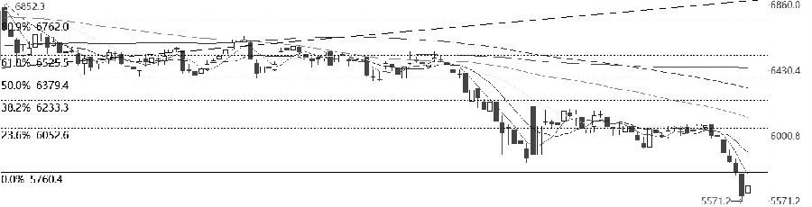 IM上市以来,走出了一个大的箱体形态,运行区间在5760—7000点。近期,IM跌破前低5760点。均线方面,呈现空头排列,说明市场处于下跌趋势。指标方面,MACD指标死叉后持续发散,给出趋势看空信号;KDJ指标、RSI指标出现低位金叉迹象,表明短期存在反弹需求。同时,量仓下滑,说明空头开始获利了结,下跌动能减弱。结合上述分析判断,IM下跌过程中量能下滑,后续可能出现超跌反弹行情,关注5760点附近的运行情况。 T 指标死叉
