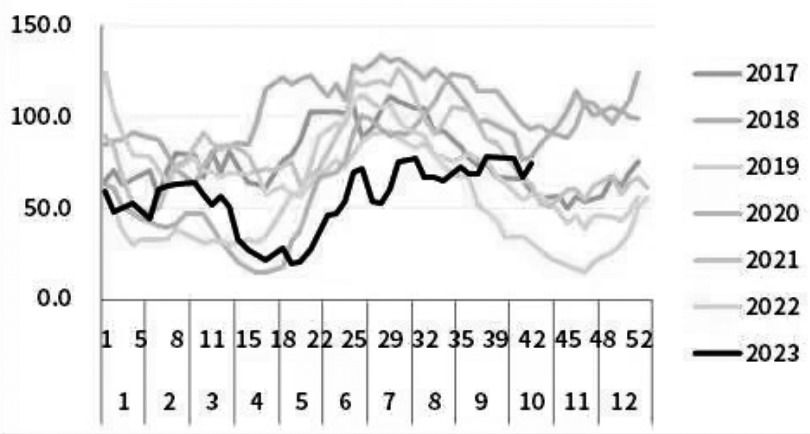 图为国内油厂豆粕商业库存跟踪(单位:万吨) 在下游企业基本完成8—10月的备货后,采购需求支撑不足,豆粕基差开始松动。虽然豆粕现货一口价在美国大豆交易天气、注入升水的带动下继续走强,但豆粕基差从8月下旬开始走入下跌通道。因此,9月以后美国大豆产区天气交易结束,CBOT大豆和连盘豆粕期货价格开始走弱,国内豆粕现货价格也从高位回落。虽然其间不时有油厂停机的消息传出,国内压榨企业有挺价意愿,但此时市场情绪已经发生转变,挺价效果并不理想。究其原因,一方面,经过6—8月集中备货,下游企业的合同和物理库存充足,中短期补库需求被透支;另一方面,贸易企业的观点出现分化,大多数贸易企业在看到油厂挺价不理想后,在有经营利润的情况下,为锁定经营利润,加快销售节奏,导致国内豆粕价格快速下跌。 从成交上看,9月国内油厂口径豆粕周度成交均值仅20万吨,远低于6—8月周均157万吨的成交量。如果说成交量反映的是采购情绪,那么下游提货量则反映实际需求。值得一提的是,9月中下旬是“双节”备货期,但传统消费旺季并没有体现出提货的增量,9月豆粕日均提货量维持在17万吨,与6—8月持平。因此,9月和10月中上旬,在国内油厂周均160万吨偏低的压榨量下,豆粕商业库存出现反季节性累积。 11—12月仍需注意风险 展望国内豆粕后市行情,目前市场情绪不乐观。 从供应端来看,后期国内进口大豆预期到港量相对充足。据第三方资讯机构预估,10—12月,国内进口大豆到港总量接近2600万吨,远高于去年同期的2200万吨,以及过去3年均值2350万吨。从到港节奏来看,虽然10月进口大豆到港预估偏低,仅700万吨左右,但11月、12月或面临进口大豆集中到港,今年最后两个月大豆月均到港量为930万吨,应对国内油厂压榨需求绰绰有余。 从需求端来看,四季度通常是国内进口大豆压榨需求淡季,过去3年,四季度进口大豆压榨量均值为2402万吨,低于三季度压榨均值2458万吨。一方面,因为年末生猪、禽类通常会集中出栏,将导致豆粕饲料需求下降,特别是今年国内畜禽养殖业利润低,经历7—8月短期反弹后生猪价格再次走弱,猪企利润倒挂且基础存栏量较大,后期仍面临较大的出栏压力。另一方面,基于2022/2023年度全球菜籽和葵籽整体增产的事实,四季度国内杂粕供应相对充足。截至10月中旬,华南地区豆粕和菜粕现货价差接近1000元/吨,豆粕和葵粕现货价差达到1150元/吨,均位于最近半年的偏高水平,将对豆粕需求造成替代竞争。这两个因素叠加明显不利于后期国内豆粕的消费。总体来看,四季度国内豆粕供应相对充足,而需求预期不乐观,这将继续压制现货价格和基差。 与此同时,后期还需关注国内外豆粕市场风险。 国外方面,目前南美新作大豆尚处在播种早期,巴西预期丰产是国际大豆估值和国内进口大豆成本的最大压力。若南美新季大豆在生长期出现不利天气而导致丰产预期落空,那么全球大豆市场格局则需要重新评估。 国内方面,虽然预期四季度国内进口大豆供应充足,但目前国内进口大豆买船主要集中在10月和11月,12月以及明年1月进口大豆因无榨利支撑而无法买船,为今年四季度和明年一季度国内进口大豆供应带来不确定性。目前,国内上下游博弈尚存,下游企业对今年四季度和明年一季度基差接受度不高,无法给出油厂转移风险的途径,导致大豆采购持续偏慢。而目前国内豆粕产业的供需结构相对脆弱,自8月下旬豆粕基差松动以来,中下游市场参与者对四季度豆粕现货价格和基差的观点转空,主动压缩物理库存和基差合同。从数据来看,10月中旬,国内饲料企业豆粕平均物理库存天数已经从8—9月的9—10天降至8天左右。如果后期南美天气出现问题,以目前国内进口大豆的采购进度和产业企业库存情况来看,豆粕价格有大幅上涨空间。 [菜粕继续承压运行] 供应方面,加拿大菜籽仍然是国内进口菜籽的主要来源。1—9月,我国到港的424万吨菜籽中有398万吨来自加拿大。因此,随着三季度以来进口加拿大菜籽压榨持续给出利润窗口,国内买船充足。预计10—12月国内进口菜籽到港量接近100万吨,且主要集中在11—12月到港,再加上国内四季度通常会有50万吨进口菜粕到港量,四季度菜粕供应充足。