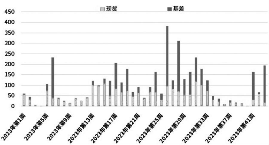 图为油厂豆粕周度成交量(单位:万吨) 从需求端来看,6—8月,国内豆粕需求表现强劲。数据显示,6—8月,国内油厂口径豆粕现货提货量为1124万吨,去年同期为1015万吨,同比增幅10.7%。相对提货量,这个时间段豆粕现货成交更加积极。笔者认为,这个阶段国内豆粕需求旺盛主要有几点原因:一是截至5月底,国内油厂豆粕商业库存不足30万吨,海关CIQ证书检疫带来的不利影响导致下游对断豆的恐慌增加,市场出现集中补库需求。二是7—8月国内养殖需求明显改善,生猪养殖利润曾在7—8月短暂回升至正值,提振生猪二育扩栏。因此,市场对四季度豆粕现货需求非常乐观,增加了远月采购需求。三是三季度国内杂粕到港量相对偏低,菜粕、颗粒粕、葵粕到港等都出现明显下滑,增加了豆粕的替代需求。 总的来说,6—8月,国内豆粕供需双旺,特别是在中下游市场集中买货的情况下压缩了油厂豆粕库存,导致豆粕供需紧张,继而助推价格不断上涨。 9月出现反季节性累库 相对6—8月国内豆粕强势上涨行情,9月以后豆粕期现价格均从高位大幅回落。