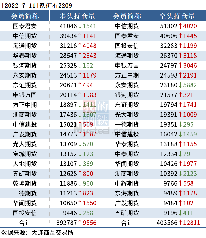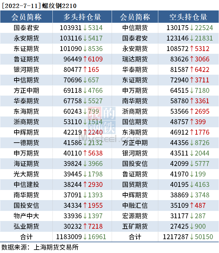 黑色持仓日报:期螺跌4.05% 中信期货减持超2.2万手空单 我的钢铁网 07月11日 截至7月11日收盘,螺纹钢2210收4049元/吨,跌4.05%;热卷2210收4049元/吨,跌3.98%;铁矿石2209收741元/吨,跌3.26%。 各品种具体如下: 各品种持仓情况具体如下:(文章来源:我的钢铁网) (责任编辑:admin)