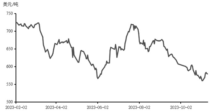 [国际菜籽供应压力增加] 目前,加拿大菜籽已经完成收获。10月,加拿大农业部未对2023/2024年度平衡表进行调整,只对2022/2023年度的项目进行了微调,但旧作的结转库存仍然保持不变。加拿大农业部预计,2023/2024年度菜籽产量为1736.8万吨,较上年度减产132.7万吨。与此同时,美国农业部也将加拿大菜籽产量由9月的1820万吨下调至1780万吨,略高于加拿大统计局的预估。近几周加拿大菜籽出口提速,周度出口量恢复至20万吨以上,目前已累计出口菜籽164.97万吨,与5年同期相比,这一出口进度仍然偏慢。考虑到前期出口偏慢的影响,今年加拿大菜籽月度出口量的高点或延后至11月。目前,加拿大菜籽出口压力尚未见到缓解的迹象,加拿大菜籽的CNF价格出现大幅下跌,我国菜粕、菜油价格也随之出现下跌。