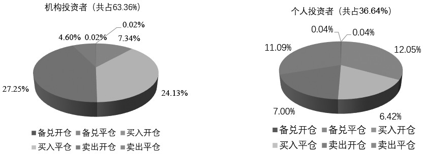 图为2022年上交所期权市场不同类型投资者投资偏好 个人投资者偏好于买入开仓和卖出平仓,2022年买入开仓交易占其所有开仓交易的63.10%,卖出平仓占其所有平仓交易的63.19%。从2020—2022年的时序数据来看,这两项数据均呈下降态势。买入开仓、卖出平仓在投资逻辑上是先买入开仓再卖出平仓,说明个人投资者的投资方向整体偏买方策略。 机构投资者偏好于卖出开仓(不含备兑开仓)和买入平仓,2022年卖出开仓占其所有开仓交易的78.73%,买入平仓占其所有平仓交易的83.93%,且从2020—2022年的时序数据来看,这两项数据均呈上升趋势。卖出开仓、买入平仓在投资逻辑上是先卖出开仓再买入平仓,由此可以推出机构投资者整体偏卖方策略。