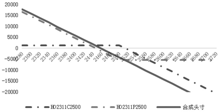 图为合约等值股指期权和股指期货市场数据对比 [股指期货和股指期权的基差定义] 通常意义下,股指期货基差等于标的指数价格减去股指期货价格,也可以转换出以下等式: 股指期货基差=标的指数价格-股指期货价格=(标的指数价格-股指期货理论价格)+(股指期货理论价格-股指期货价格)。 其中,前一部分标的指数价格减去股指期货理论价格是股指期货的理论基差,主要是融资成本、指数分红、时间价值等因素带来的基差;后一部分股指期货理论价格减去股指期货价格是投资者对股指期货走势高估或者低估产生的基差,又称价值基差。 投资者可以参照股指期货市场,刻画股指期权市场和指数期货市场之间的升贴水。一般情况下,利用期权市场的合成期货策略为:买入看涨期权,同时卖出相同标的、同一月份、同一行权价看跌期权合成期货多头头寸;买入看跌期权,同时卖出相同标的同一月份、同一行权价看涨期权合成期货空头头寸。 例如,按照54.6元/点买入1手行权价为2500元/点的11月份上证50看跌股指期权(HO2311P2500),同时按照11.6元/点卖出1手行权价为2500元/点的11月份上证50看涨股指期权(HO2311C2500),可以构建合成期货空头,空头头寸的成本为2500-54.6+11.6=2457(元/点)。当指数大于2500元/点时,买入看跌期权亏损有限,但卖出看涨期权盈亏跟随指数波动;当指数小于2500元/点时,买入看跌期权跟随指数波动,卖出看涨期权盈利有限。