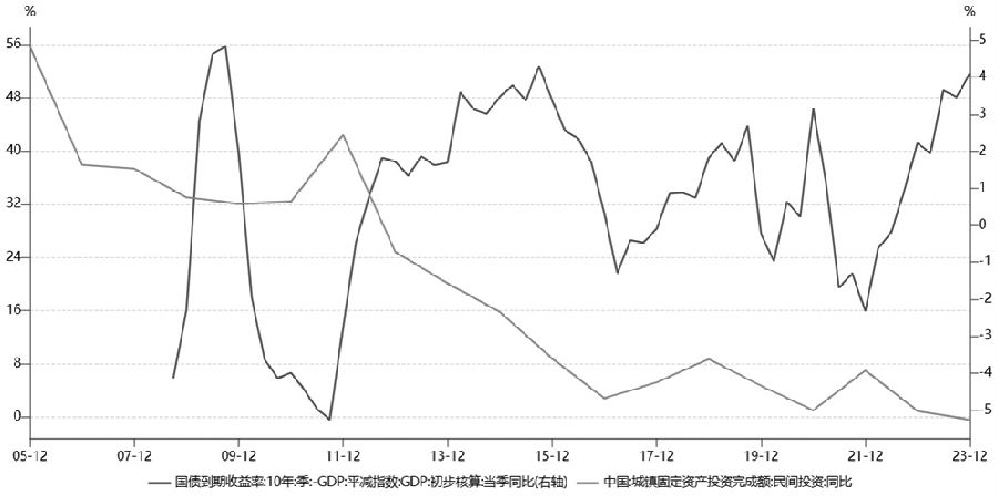 图为10年期国债收益率-GDP平减指数当季同比与民间固定资产投资同比增速变化 2023年四个季度,国内GDP平减指数当季同比增速分别为0.94%、-0.92%、-0.84%、-1.43%,10年期国债收益率均值分别为2.88%、2.74%、2.63%、2.66%。用10年期国债收益率的季度平均值减去GDP平减指数当季同比作为衡量实际利率的参考指标,2023年四个季度该指标的数值分别为1.94%、3.65%、3.47%、4.10%。与过去10多年的数据相比,该指标目前处于较高水平。该指标从2021年年末的低点-2.32%持续攀升至2023年年末的4.1%,同期民间固定资产投资同比则连续两年下滑,2022年民间固定资产投资同比增速回落至0.9%,2023年进一步回落至-0.4%。实际利率走高不利于企业扩大投资和居民增加消费。企业需要测算较高的投资回报率,才会增加债务融资来扩大生产;居民由于储蓄可以获得较高的实际回报,会考虑延迟消费、减少当期可选消费。 2023年,我国居民新增人民币存款16.67万亿元,仅比2022年的历史高点17.84万亿元少增1.17万亿元,2021年为9.9万亿元,2019年为9.7万亿元。同期居民新增人民币贷款4.33万亿元,比2022年的3.83万亿元多增5000亿元,但少于2021年的7.92万亿元和2019年的7.43万亿元。2023年年末,我国居民储蓄存款余额约为137万亿元。2022年和2023年居民部门新增了较多存款,有疫情“疤痕效应”的原因,也有实际利率较高的原因。2023年12月末,广义货币(M2)余额同比增长9.7%,增速比上月末低0.3个百分点;狭义货币(M1)余额同比增长1.3%,增速与上月持平。当月,M1同比增速维持低位,显示企业部门在资金运用上相对保守。如何有效降低实际利率,成为2024年货币政策的一个重要关注点。央行货币政策委员会2023年四季度例会公告中提及,保持社会融资规模、货币供应量同经济增长和价格水平预期目标相匹配,促进物价低位回升,保持物价在合理水平。央行近期表示,下一阶段将强化逆周期和跨周期调节,从总量、结构、价格三方面发力;在价格方面,央行将继续深化利率市场化改革,促进社会综合融资成本稳中有降。市场预期央行未来可能调降政策利率。