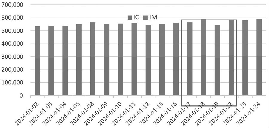 自动赎回型期权产品近期因集中敲入而备受市场关注,目前亟待解决的问题包括:自动赎回型期权产品敲入对股指期货影响有多大?哪些交易机会值得关注?我们将在本文中逐一讨论。 1月17日至22日标的连续创新低,4个交易日内,敲入线处于中证500指数4780—5158点和中证1000指数5000—5512点的产品集中敲入,用产品敲入线集中区间来计算(中证500:75%—80%,中证1000:70%—80%),反推出敲入主要集中于2023年2月初至8月上旬发行的新产品,预估出挂钩标的为中证500和中证1000的敲入规模约为2957亿元。1月17日至22日,中证500和中证1000股指期货总成交额为10382亿元。假设敲入对自动赎回型期权产品对冲端的影响为名义本金的30%,敲入后减仓约占市场成交额8.5%,即使在短期较为集中敲入的情况下,在市场中的成交占比依旧较有限。