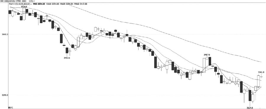 IF加权近期最低探至3124.8点一线后连续四个交易日反弹,价格连续向上突破5日均线、10日均线和20日均线。量能方面,价格反弹过程中成交量有所放大,持仓量则整体下滑。指标方面,均线系统尚未完全转势,MACD指标快慢线交出金叉后跟随价格走强。综合来看,IF加权日线出现止跌反弹,且成交量配合放大及MACD指标交出金叉,建议以反弹思路对待。 IC 探底回升