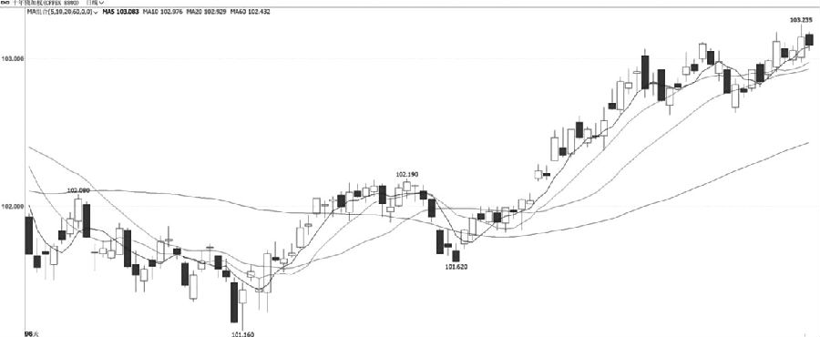 IC加权近期日线架构出现一根大阴线后,价格很快反弹回补该阴线的跌幅。量能方面,价格本轮止跌反弹过程中成交量明显放大,持仓量先增后减。指标方面,均线系统延续空头趋势,MACD指标绿色能量柱有所收敛并有望交出金叉。综合来看,IC加权日线架构探底回升,成交量放大确认阶段性底部形态,后续一旦站稳20日均线位置,可以反弹思路操作。 十债 背离形态