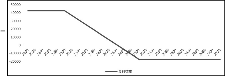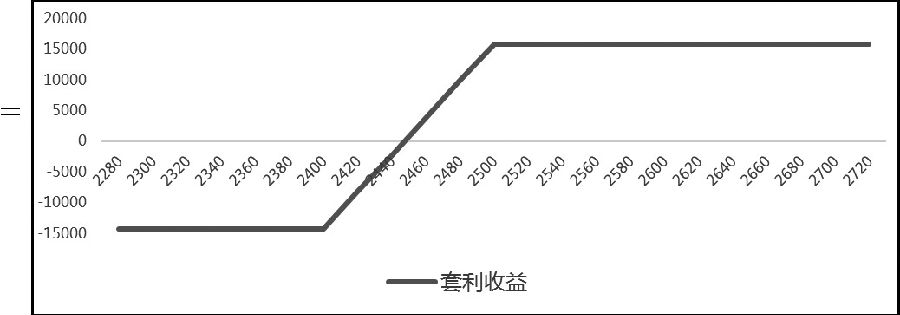 表为中证1000股指期权领口策略到期盈亏 代入具体数据:持有1手股指期货多头IH2311,持仓成本为开盘价2452.8元/点;按照6.2元/点买入3手行权价为2400元/点的11月份上证50看跌股指期权(HO2311P2400);按照11.6元/点卖出3手行权价为2500元/点的11月份上证50看涨股指期权(HO2311C2500),组合中收到权利金。 因此,当交割价在2400元/点下方,套利出现最大亏损14220元;当交割价在2400元/点到2500元/点之间,套利盈亏满足线性关系;当交割价在2500元/点上方,存在无风险套利15780元。