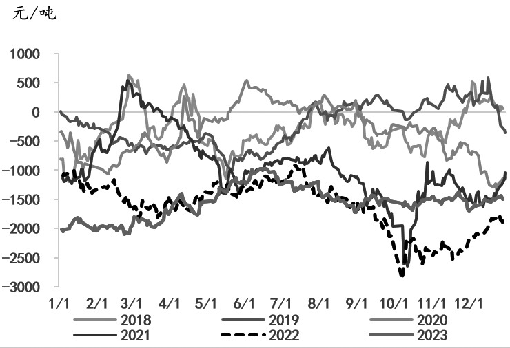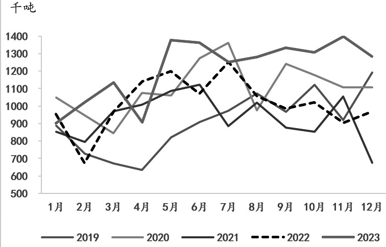 图为全国甲醇开工率 2024年,在供需宽松格局下,煤炭价格重心将下移,但国内经济存在温和复苏预期,煤价或伴随着旺季需求出现阶段性反弹。基于成本重心下移,甲醇生产利润或有改善,叠加新增产能投放,甲醇开工率和产量有望进一步增加。笔者预计,后市甲醇整体开工率将跟随企业利润波动,一季度、二季度,甲醇开工率仍将维持高位区间运行;三季度,伴随着煤炭价格上涨和企业利润挤压,甲醇开工率将回落;四季度,受经济复苏和利润改善推升,甲醇开工率或再度涨至高位。 [进口优势依然存在] 2023年,我国甲醇进口量达到1219万吨,比2022年的1120万吨增加8.89%。我国甲醇进口量维持高位,究其原因,一方面,2023年3月上旬,伊朗甲醇装置恢复稳定后,海外甲醇开工也升至高位,并且海外甲醇产能进一步释放,海外供应体量增加;另一方面,海外经济和需求疲弱,在进口利润支撑下,流入我国的甲醇供应有所提升。