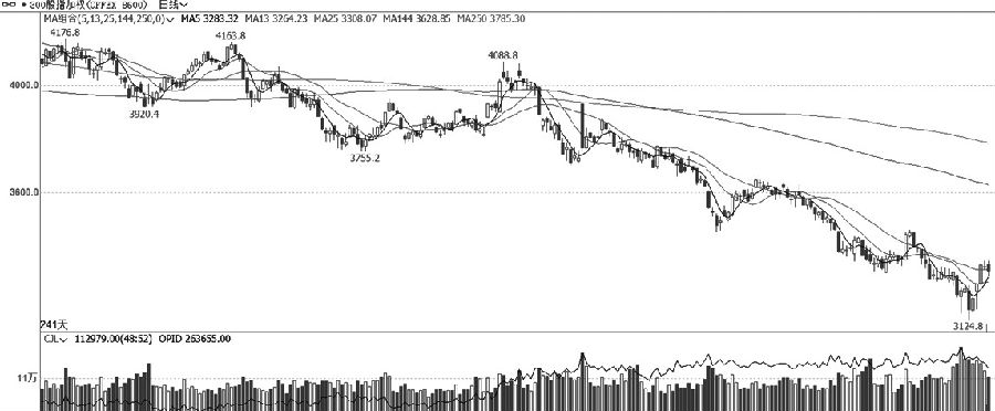 IC加权创新低后有所反弹,且量仓等指标趋于分化。周一早盘小幅高开后振荡下行,盘中维持偏弱走势。主连合约较现货指数大幅贴水,净基差接近正常水平,期货较现货指数明显偏弱。主连合约小幅加仓,远月合约加减仓不一,整体仓位稳步增加,但成交量能较前期大幅缩减。MACD绿柱继续收敛,KDJ快线中位运行,日K线将考验短期均线支撑力度,建议观望为主。 IF 走势趋稳