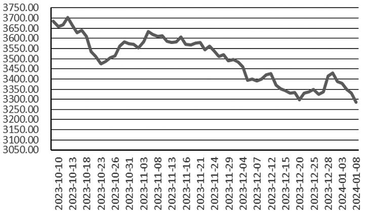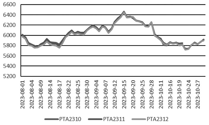 图为PTA期货合约价格(2023年8月至2023年10月)