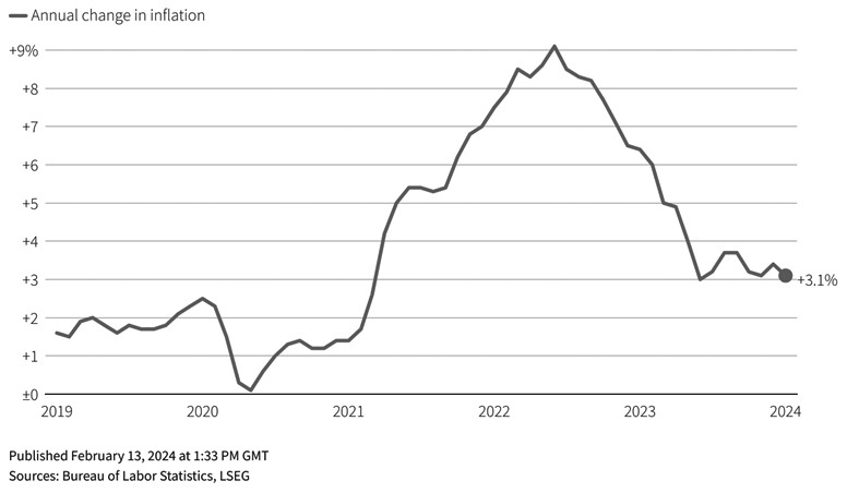 2023年以来原油价格受美国宏观数据的影响较大,除此之外,俄乌冲突以来,制裁对俄罗斯石油出口和欧盟进口产生了重大影响。在禁令实施前,俄罗斯的柴油占西北欧总进口的多数。实施禁令以来,西北欧对印度、美国和中东等地柴油的进口量不断增加,逐渐取代了俄罗斯的供应。因此俄乌冲突-欧洲需求-美国出口-红海危机都是连锁反应对原油产生影响,并且我们认为当前对原油和成品油的需求内在逻辑产生了分化影响。 [美联储降息预期降温]