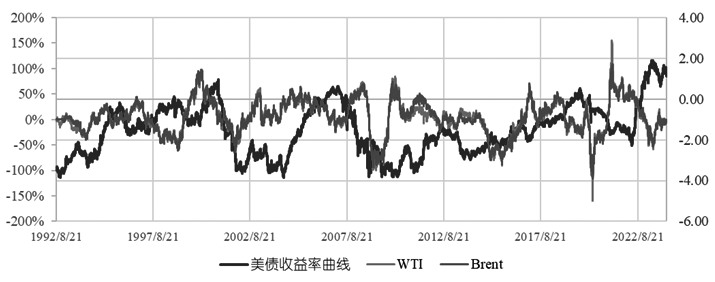 图为原油-美债收益率曲线走势(1992年—2024年2月16日)