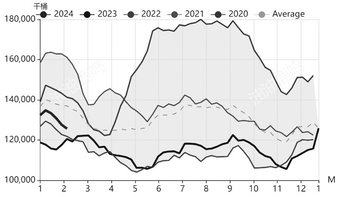 图为美国柴油库存(单位:千桶) 近期我们对EIA数据的分析不能再局限于库存的增减。从原料端来看,炼厂对原油的需求下滑但进料的4周平滑数据已经形成明显的趋势,因此可判定炼厂的原料消耗在减少。从截至2月9日的数据来看,美国炼厂进料超越季节性急速下滑,甚至已经低于历史性下缘。总库存方面,原油和成品油库存总和维持相对平稳的水平,上周商业原油库存大幅累库1200万桶,汽油、柴油合计下降550万桶,成品油时常表现为去库较快,其实是原料向成品油的一种转移。炼厂开工不足和成品油去库逻辑形成闭环,未来可能会看到成品油例如汽油、柴油偶然紧缺和原油需求缩水。 成品油在美国地区的去库化并不是偶然,这其实反映当前油市贸易格局改变下的利润驱动。2022年的对俄制裁使欧洲柴油进口贸易转向亚洲等更多国家,但当前红海危机使亚洲的运输通道再次受阻,对于原油来说,盘面更多反映的是情绪价格的波动,而对成品油来说影响更加实际。对比2022年可见,受俄乌冲突和对俄制裁后果的影响,2022年欧洲柴油价格高企。当前西北欧柴油价格已经回落到事件前的水平,截至2023年年底,西北欧柴油价格大部分时间内保持在2.50—3.20美元/加仑,并且与美国柴油价格走势较为一致,欧美柴油价差也相对稳定。欧洲经济数据甚至表面制造业活动长期低迷并引导出潜在的需求萎靡,但欧美柴油价差细节数据能观察到美国-欧洲柴油价格出现分歧,2023年9—12月欧美柴油价差逐渐接近于0,而近一周该价差最大扩大到0.18美元/加仑左右。因此剔除欧洲本身经济活动需求,我们能看到由于地缘政治事件造成的附加影响传导至一些原油的下游产品特别是依赖进口的欧洲柴油,这也是未来市场看好欧美汽柴油利润的原因之一。 [节后原油价格走势预测] 从价差及策略来看,一方面,原油期货转掉期(EFS)当前走平,没有明显的趋势变化反映市场价格对红海冲突不敏感,还未达到俄乌冲突时期的冲击力;另一方面,2023年至今持续提及的美国出口供应增量,也压低WTI-Brent原油价差从而间接压制EFS。结合当前美国宏观数据来看,消费需求一时不会大幅减弱,而炼厂开工维持低位,成品油去库步伐稳定,市场看好未来中短期成品油利润。由于OPEC+大概率维持减产,而减产协议持续存在,容易引起市场波动,叠加一季度属于成品油需求旺季,油价可能维持当前区间价格。而红海地区的原油运输量较低,买家可以通过转移卖方贸易对象伴随额外成本增加来调整价格。因此总结原油及成品油,目前主要关注成品油的利润扩张方面的策略。 综合来看,近期原油虽然因基本面弱化、战争对运输冲击有限影响,价格提振有限,但地缘冲突事件频发,如以色列和哈马斯之间的停火谈判进展缓慢,美国在叙利亚以及伊拉克的军事基地频繁遭到伊拉克民兵武装袭击。如果地缘冲突进一步扩大,原油相关供给国及周边航运紧张局势持续发酵,油价短期可能还将会产生溢价。(作者单位:中州期货) (责任编辑:admin) |