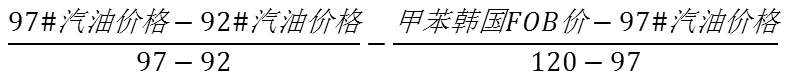 MTBE、甲苯、二甲苯、烷基化油具有较高辛烷值和较低RPV(雷氏蒸气压),适合作为调油组分。乙醇燃料因其含氧量高、挥发性强,在美国汽油中可添加的比例有限。乙苯辛烷值较小,且密度较大,一般作为调油组分的补充料。 观察调油组分的调油辛烷值性价比,与生产下游化工品的性价比的强弱,即可观察相关化工品供给面的边际变化。 以芳烃产业链的纯苯和甲苯为例,甲苯处于聚酯生产链条的中游环节,前端的石脑油经过催化重整或裂解工艺,产出纯苯、甲苯、混二甲苯(邻、间、对)等副产品。再将甲苯投入歧化装置,通过吸附分离的方法产出对二甲苯和纯苯。 纯苯不能直接用来调油,而甲苯则是常用的调油组分,故调油需求和甲苯辛烷值性价比若走强、甲苯更多地投向调油,则将导致歧化装置生产的纯苯减少。 我们采用甲苯的调油辛烷值价差来衡量甲苯调油性价比水平。以计算亚洲地区的甲苯调油性价比为例,使用具有代表性的新加坡97#汽油与新加坡92#汽油价格之差测算出单位辛烷值的市场价格,之后用韩国甲苯与新加坡97#汽油价格之差除以甲苯与新加坡97#汽油辛烷值之差(甲苯RON为120),测算出甲苯辛烷值高出汽油的部分所对应的单位价格,称为单位甲苯的调油价值。计算公式如下: 单位甲苯调油价值=