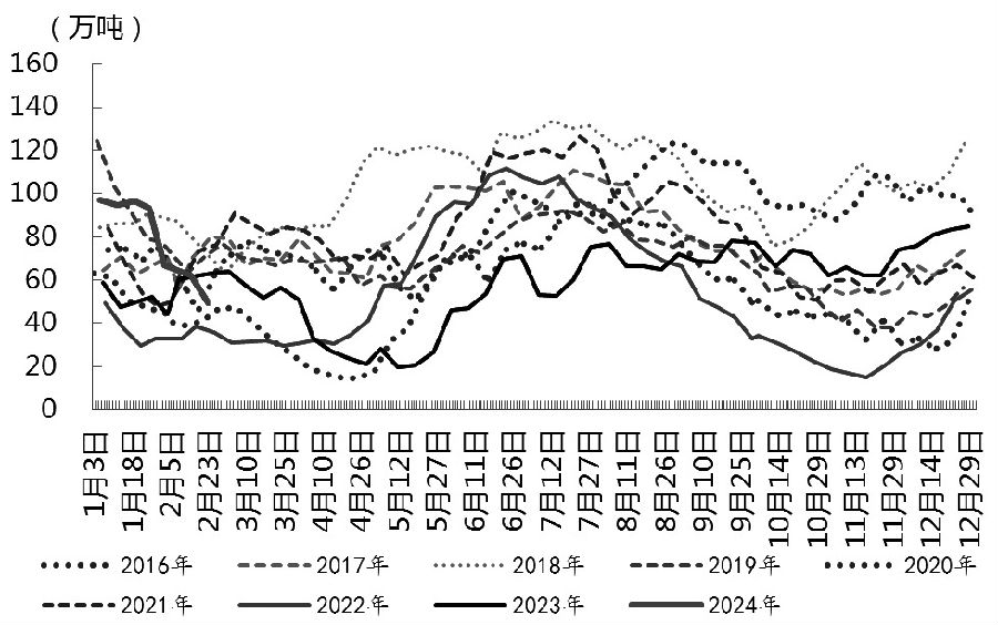 图为国内豆粕库存(单位:万吨) 卖压限制巴西大豆升贴水 2月29日以来,美豆主力期货在触及1128美分/蒲式耳的历史低位后阶段性企稳,不过国内豆粕与美豆呈现分化走势,连粕主力2405合约于2月27日起站上3000元/吨关口,于3月1日破位走高,连续收复多条均线,本周亦延续该趋势。 现货市场来看,截至3月5日,沿海主流区域油厂报价为3260—3350元/吨,天津3350元/吨跌10元/吨,山东3280元/吨跌10元/吨,江苏3290元/吨跌10元/吨,广东3260元/吨持稳。本轮豆粕上行主要受到巴西大豆升贴水上涨的成本端推动,国内基本面缺乏翻转性变化,价格以阶段性上涨为主。 2024年以来,巴西大豆升贴水出现了剧烈波动,整体走出V形走势,1月连续下挫,2月止跌反弹,春节期间上行加速。3月以来,巴西大豆升贴水高位振荡为主。从巴西大豆CNF报价来看,巴西4月、5月、6月、7月船期报价为70、90、101、125美分/蒲式尔,均较前期有所反弹。根据USDA1月供需报告数据预期,2023/2024年度巴西大豆产量环比下调至1.57亿吨,市场预期 1.567亿吨,前一个月为1.61亿吨,而且巴西咨询机构也纷纷下调巴西大豆产量预期,巴西官方CONAB2月报告预计产量为1.4940亿吨,较1月报告1.5527亿吨大幅下调近600万吨。当前市场各机构对巴西大豆新作产量预期在1.4亿—1.57亿吨之间,整体未改变南美丰产的基调,因此巴西大豆仍存在较强的卖压,后续或施压巴西大豆升贴水。 美豆新作供应基调宽松 二季度随着南美大豆收割进入尾声,美豆新作将开始种植,全球大豆市场再度进入美豆种植季定价周期。2月中旬,美国农业部在农业展望论坛上首次发布了对2024/2025年度的供需平衡预测,预计2024/2025年度美国大豆种植面积8750万英亩,比上年提高390万英亩,高于前期市场预期。大豆产量将达到创纪录的45.05亿蒲式尔,同比提高3.4亿蒲式尔或8.2%;大豆压榨预计达到创纪录的24亿蒲式尔,同比增长1亿蒲式尔或4.3%;出口预计为18.75亿蒲式尔,同比增长1.55亿蒲式尔或9.0%;期末库存将激增1.2亿蒲式尔或38%,从上年度的3.15亿蒲式尔增至4.35亿蒲式尔。 报告提前给出了美豆新作供应宽松的基调,利空市场,虽然3月和6月会对种植面积进行调整,但在美豆尚未开始种植时,加上在南美种植季即将收尾,市场消息青黄不接之际,展望论坛数据仍可给予市场以指引,给美国大豆市场价格带来压力。 在南美大豆收割期稳步推进过程中,市场对南美大豆供应压力的预期逐步兑现。由于1月巴西大豆升贴水持续下调,相较美豆更具性价比,因而对美豆出口销售存在挤占。美国农业部数据显示,截至2月29日当周,美国大豆出口检验量为102万吨,前一周修正后为106万吨。3月2日当周,美国大豆出口检验量为55万吨。本作物年度迄今,美国大豆出口检验量累计为3416万吨,同比减少20.0%。不过从近两周数据来看,中国开始采购美国大豆,对美豆消费端预期存在一定支撑。 迎来新一轮累库周期 一季度以来,国内周度进口大豆到港量持续下滑,春节后随着油厂开机逐渐恢复,油厂压榨已回归至常规水平,不过华北、山东、东北等地部分油厂3月有停机计划,进而提振成交,东北地区出现排队提货现象。整体来看,大豆压榨量维持增加态势,以消耗库存为主,进口大豆库存迎来阶段性下滑,豆粕受到春节前下游备货带动,库存加速回落至历年同期偏低水平。截至2月29日,国内主要油厂豆粕库存为55.56万吨,较前一周减少11.82万吨,减幅17.48%,同比减少9.75万吨,减幅14.93%。供应偏紧的强现实对现货价格有所支撑。不过,随着二季度南美大豆集中到港,同时南美大豆储存时间较短,倒逼油厂维持高开机率,后续豆粕供应端预期偏松。 需求端来看,当前豆粕下游饲料企业库存偏低,后续存在刚需补库预期,带动2月底以来国内油厂豆粕成交良好,但本轮补库以阶段性为主,缺乏持续性支撑。另外,从下游消费情况来看,农业农村部将全国能繁母猪正常保有目标从4100万头调整为3900万头,生猪现货弱势延续,在强预期影响下,养殖端压栏,二育情绪或升温,供给压力延后,短期支撑生猪价格上行。不过,从当前养殖利润来看,仍缺乏转好的驱动点。水产养殖方面,二季度将开启的水厂旺季存在对两粕需求端的提振预期。不过对当下的豆粕下游采购影响有限,预计豆粕将迎来新一轮累库周期。 对于后市,我们认为南美大豆丰产充分兑现过程中,巴西大豆卖压仍限制升贴水上涨的空间,而从美豆来看,在新种植季到来前缺乏上行驱动,于成本端拖累内盘豆系品种。(作者单位:国元期货) (责任编辑:admin) |