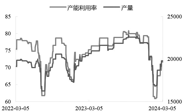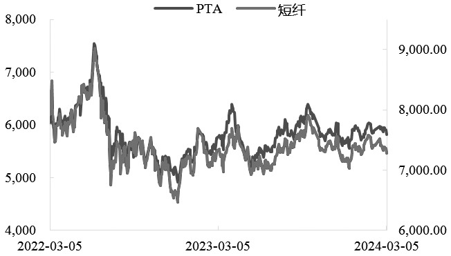 原料端价格维持振荡走势 原油方面,随着3月初OPEC+会议落地,沙特和俄罗斯等多个关键产油国决定将自愿减产措施延长至二季度末以平衡市场供应情况。该消息一出,WTI原油一度突破80美元/桶关口。OPEC+给予市场信心,短期市场需求旺盛。同时,美联储降息可能在6月落地,从而刺激消费潜力,改善供需关系。与此同时,俄罗斯有史以来首次启动原油价格下限机制,设定乌拉尔原油最低限价65美元/桶。此外,俄罗斯还进一步宣布削减47.1万桶/日原油产出,此举大幅提振油市信心,油价随之走强。 地缘局势方面,加沙地带停火谈判陷入困境,需要注意的是,当前巴以是否能达成停战协议以及整个中东局势是否降温,对原油市场的影响将是迅速和短暂的。 其他原料方面,短纤聚合成本在6600元/吨上下波动,截至3月6日,PX价格涨后回落,周均价环比略有上涨。而石脑油在原油反弹和亚洲石脑油裂解开工上升影响下,3月第一周涨幅较为明显,PXN则被压缩至350美元/吨以下。PX虽有远月检修季供应减量预期支撑以及进入产能投放周期末尾的现实支撑,但当前现货供应宽松,多空因素牵制下,预计短期内PX价格走势振荡。 PTA方面,期货价格振荡整理,PTA加工差在2月底一度压缩至300元/吨以下,截至3月4日恢复至425元/吨。春节假期后聚酯提负速度偏慢,不及预期,PTA供需整体表现偏弱,2月22日,PTA工厂库存高达7.51天;2月29日PTA工厂库存大幅下降16.64%至6.26天,2月累库达50万吨。预计短期PTA仍以消化库存为主,基差偏弱运行。3月聚酯负荷或按预期回升,但PTA部分装置检修有推迟可能,意味着3月PTA去库预期可能无法兑现。不过PX检修计划相对明确,对PTA价格仍有一定支撑作用。