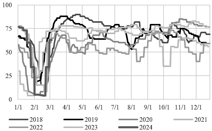 图为国内织造业开工率(单位:%) 短期在成本与供需的博弈下,短纤绝对价格的波动空间相对较小。中长线来看,3月下旬后PX及PTA端陆续进入春检,成本带来的支撑预计加强,且2024年短纤投产并不算太多,伴随消费端的陆续恢复,中长线市场谨慎看涨。加工费方面,短期在短纤工厂低负荷与下游陆续恢复的背景下存在一定修复预期,但修复幅度预计有限。(作者单位:中州期货) (责任编辑:admin) |