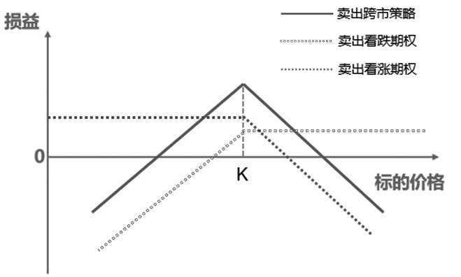 图为卖出跨式(卖出K看涨+卖出K看跌期权)收益与标的资产价格关系