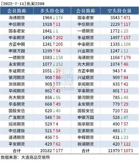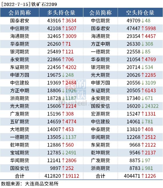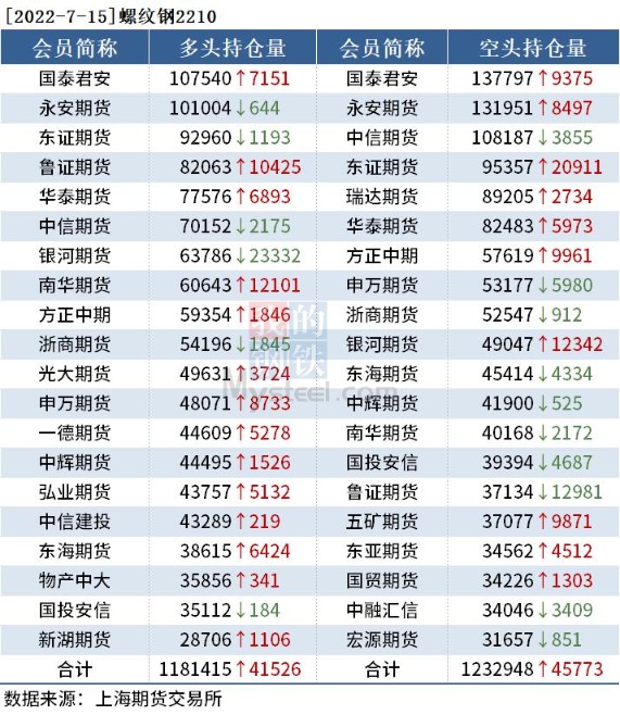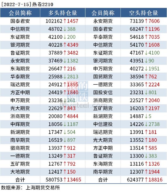 黑色持仓日报:铁矿石跌逾10% 东证期货增持超2万手螺纹钢空单 我的钢铁网 07月15日 截至7月15日收盘,螺纹钢2210收3589元/吨,跌7.21%;热卷2210收3576元/吨,跌7.29%;铁矿石2209收645元/吨,跌10.04%。 各品种具体如下: 各品种持仓情况具体如下: (文章来源:我的钢铁网) (责任编辑:admin)