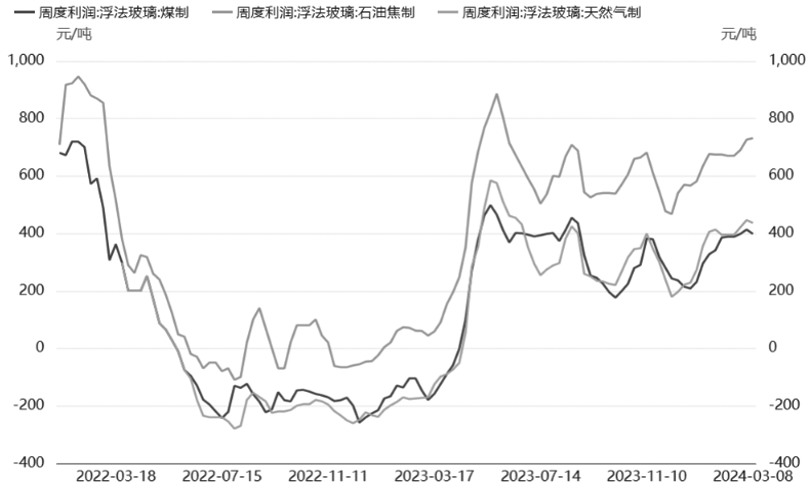 因房地产仍处在下行周期,去年施工面积下滑幅度较大,对应今年地产竣工回落明显,玻璃需求支撑减弱。由此,玻璃价格面临较大的考验。 去年玻璃主连合约价格最低触及1300—1400元/吨低位,目前价格远离1300—1400元/吨预警线,主要原因在于:1.“保交楼”政策支撑需求,2023年房屋竣工面积同比基本处在20%的增幅水平。2.原材料纯碱因停减产和产能投放暂时不及预期等原因,价格相对坚挺,2023年7月起,煤炭等燃料价格整体表现坚挺,成本端支撑较强。3.房地产相关政策陆续出台,降准降息以及积极的财政政策助推玻璃价格出现几轮反弹。 国家统计局最新数据显示,2024年1—2月份,全国房地产开发投资11842亿元,同比下降9.0%。房屋竣工面积10395万平方米,下降20.2%。相比去年,房屋竣工面积同比增长保持在20%左右。因房地产仍处在下行周期,去年的施工面积下滑幅度较大,对应今年地产竣工回落明显,玻璃需求支撑减弱。由此,玻璃的价格面临较大的考验。