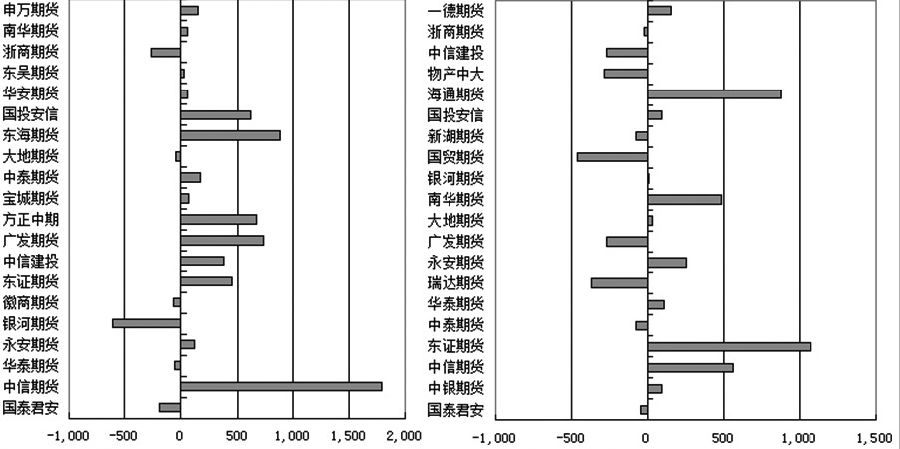 昨日,沪胶期货2409合约呈现缩量减仓、大幅下行的走势。盘中期价最低下探至14175元/吨,收盘大跌1.99%,至14280元/吨。持仓量大幅减少22758手,至124434手,降幅达15.46%。 交易所多空持仓排行榜前20席位数据显示,沪胶期货2409合约持仓出现多空双增的态势。其中,多头合计增持4952手,至85373手;空头合计增持1894手,至116539手。由于多头主力合计增持多单数量超过空头主力合计增持空单数量,净空头寸小幅减少至31166手。 具体看,沪胶期货2409合约多头前20席位中,增持多单的有14家。其中,增持多单数量超过500手的有5家,为中信期货、广发期货、方正中期、东海期货和国投安信期货席位,分别大幅增加1790手、737手、675手、892手和617手。增持多单数量介于100手至500手之间的有5家,为永安期货、东证期货、中信建投期货、中泰期货和申万期货席位,分别增加125手、450手、380手、175手和147手。剩余4家增持数量不足100手。 空头前20席位中,增持空单的有11家。其中,增持空单数量超过500手的有3家,为东证期货、中信期货和海通期货席位,分别大幅增加1078手、564手和878手。增持空单数量介于100手至500手之间的有4家,为华泰期货、永安期货、南华期货和一德期货席位,分别增持114手、254手、486手和156手。剩余4家增持数量不足100手。