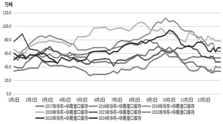 图为国内港口甲醇库存走势(单位:万吨)